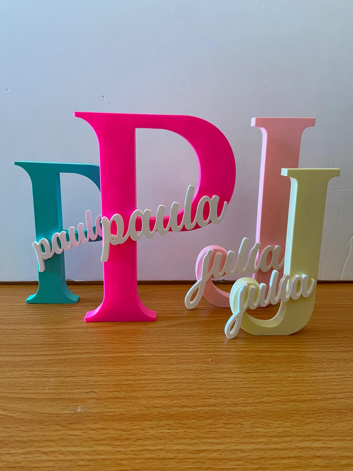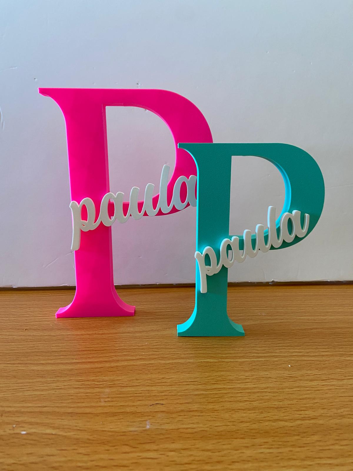 Descubre una forma única y divertida de personalizar tu espacio con esta inicial con nombre diseñada e impresa en 3D. Cada pieza se crea cuidadosamente para reflejar tu estilo, con la posibilidad de añadir tu personaje animado favorito como decoración especial.