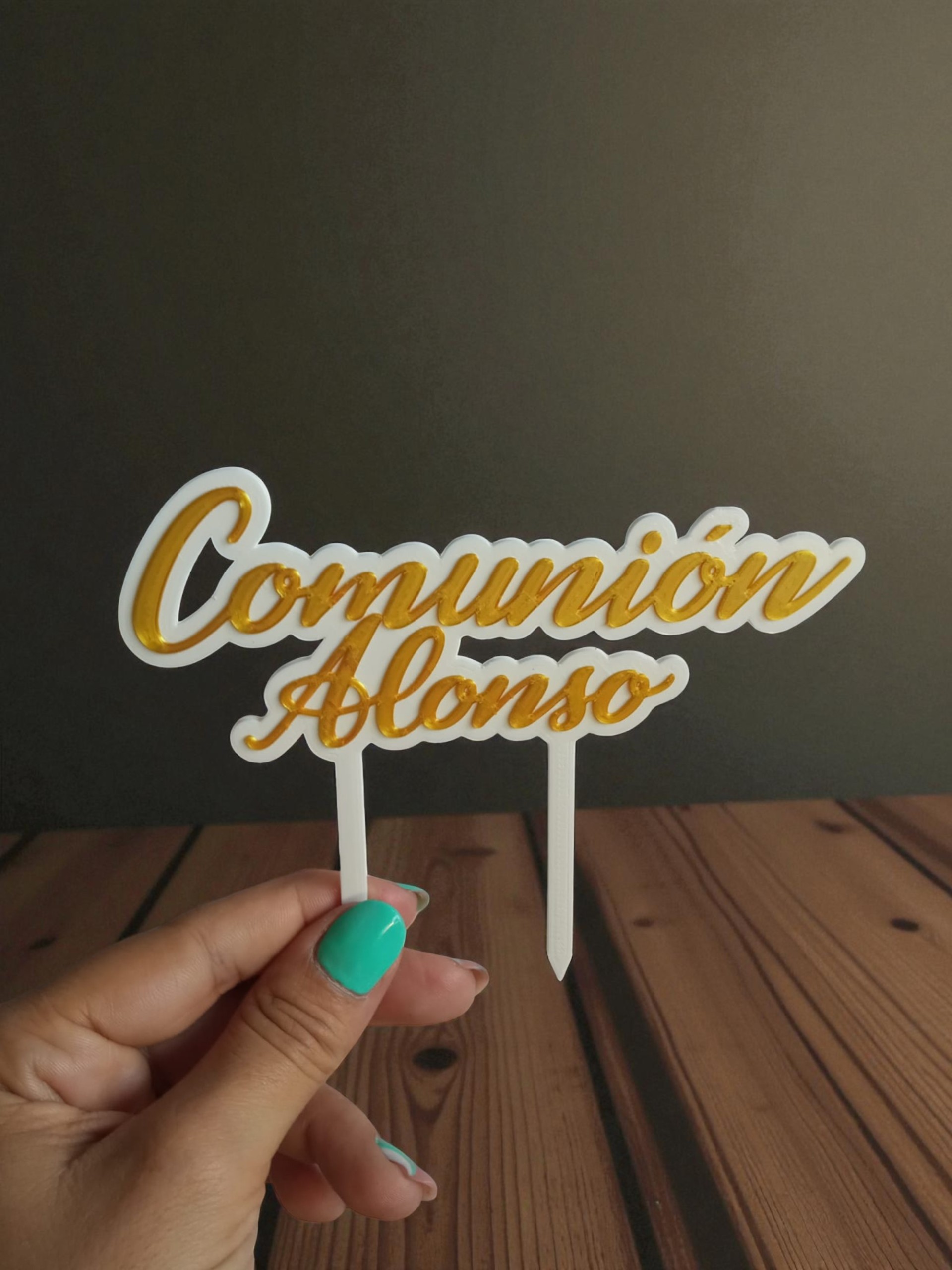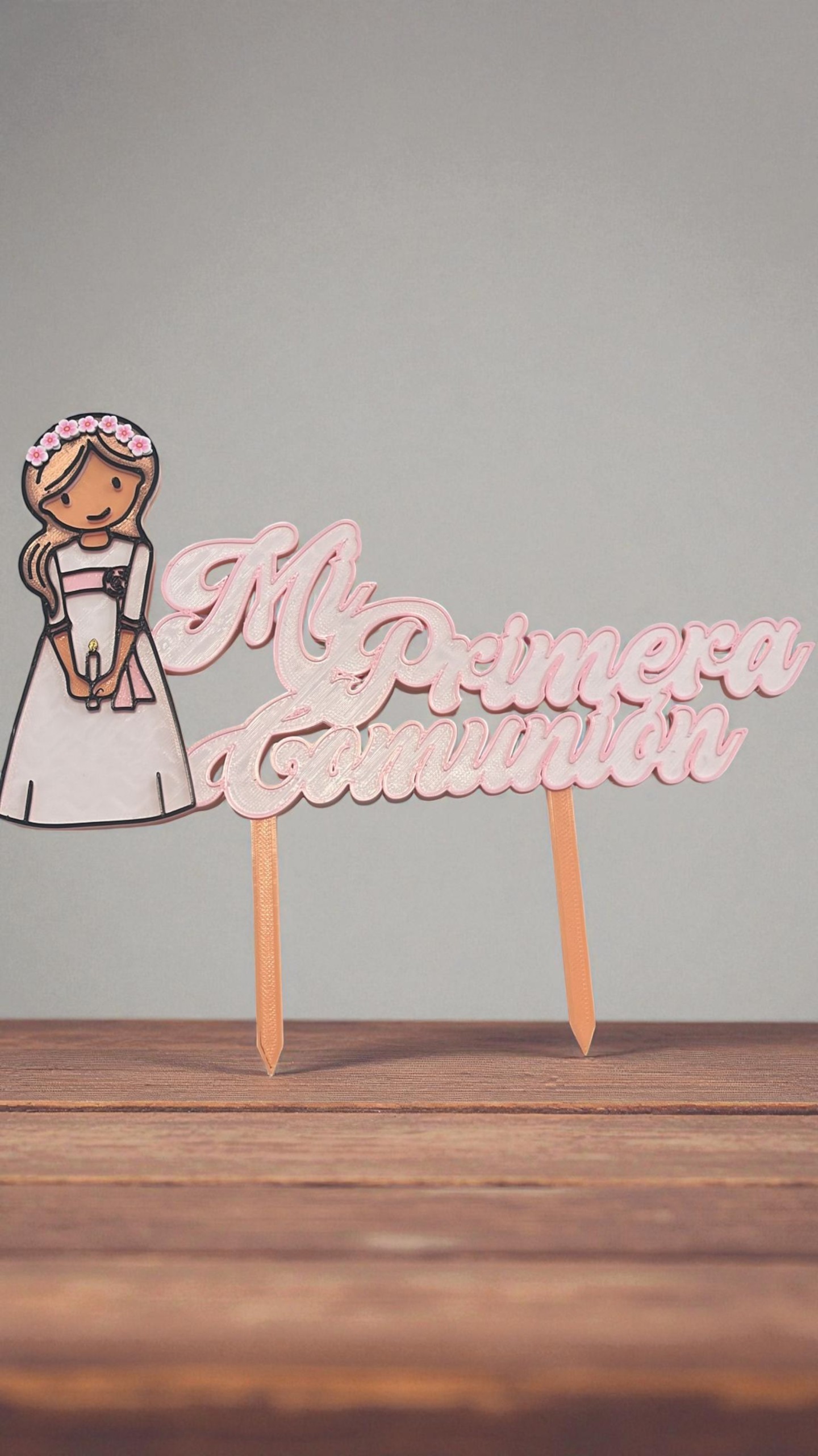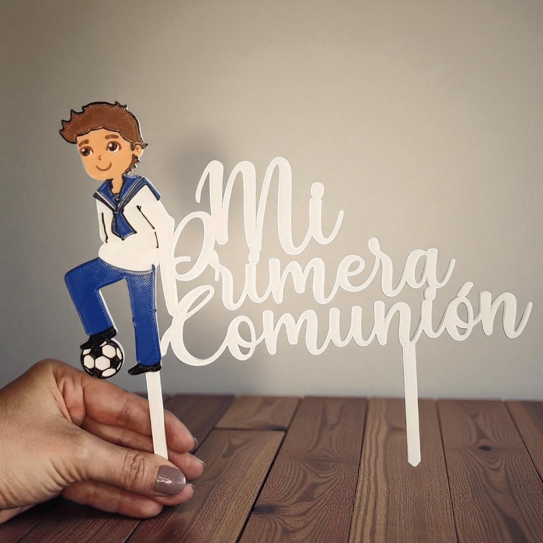 Agrega un toque único, especial y personalizado a tu celebración con estos topper para tu Primera Comunión, diseñado y fabricado con impresión 3D de alta calidad. Su diseño elegante y delicado lo convierte en el detalle perfecto para coronar tartas o centros de mesa, aportando un acabado original y moderno.