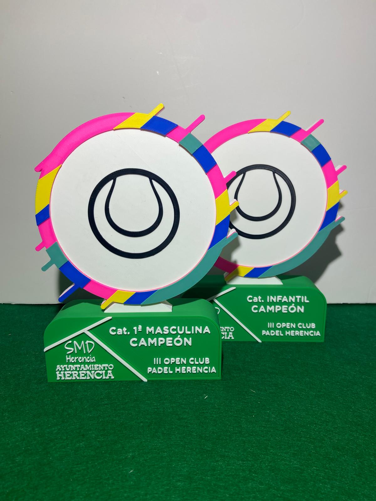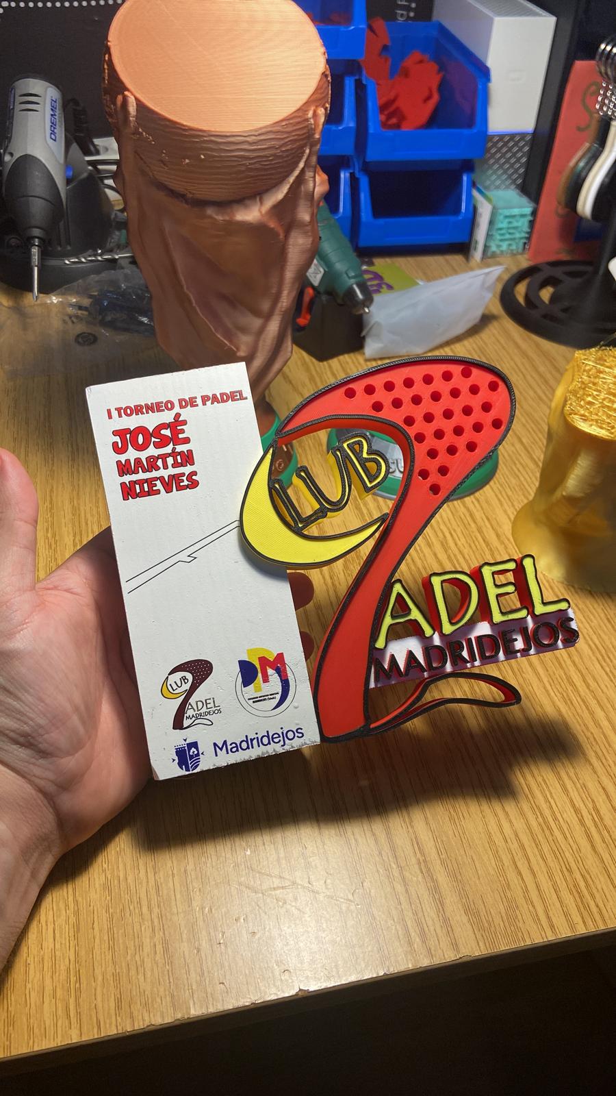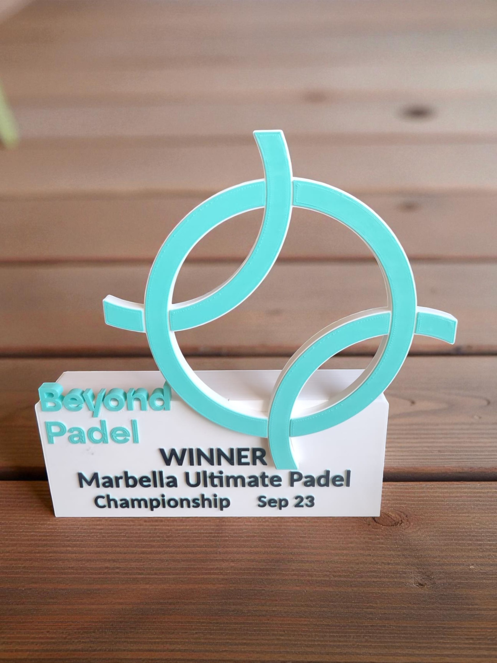 Trofeo personalizado para torneo de pádel, diseñado e impreso en 3D