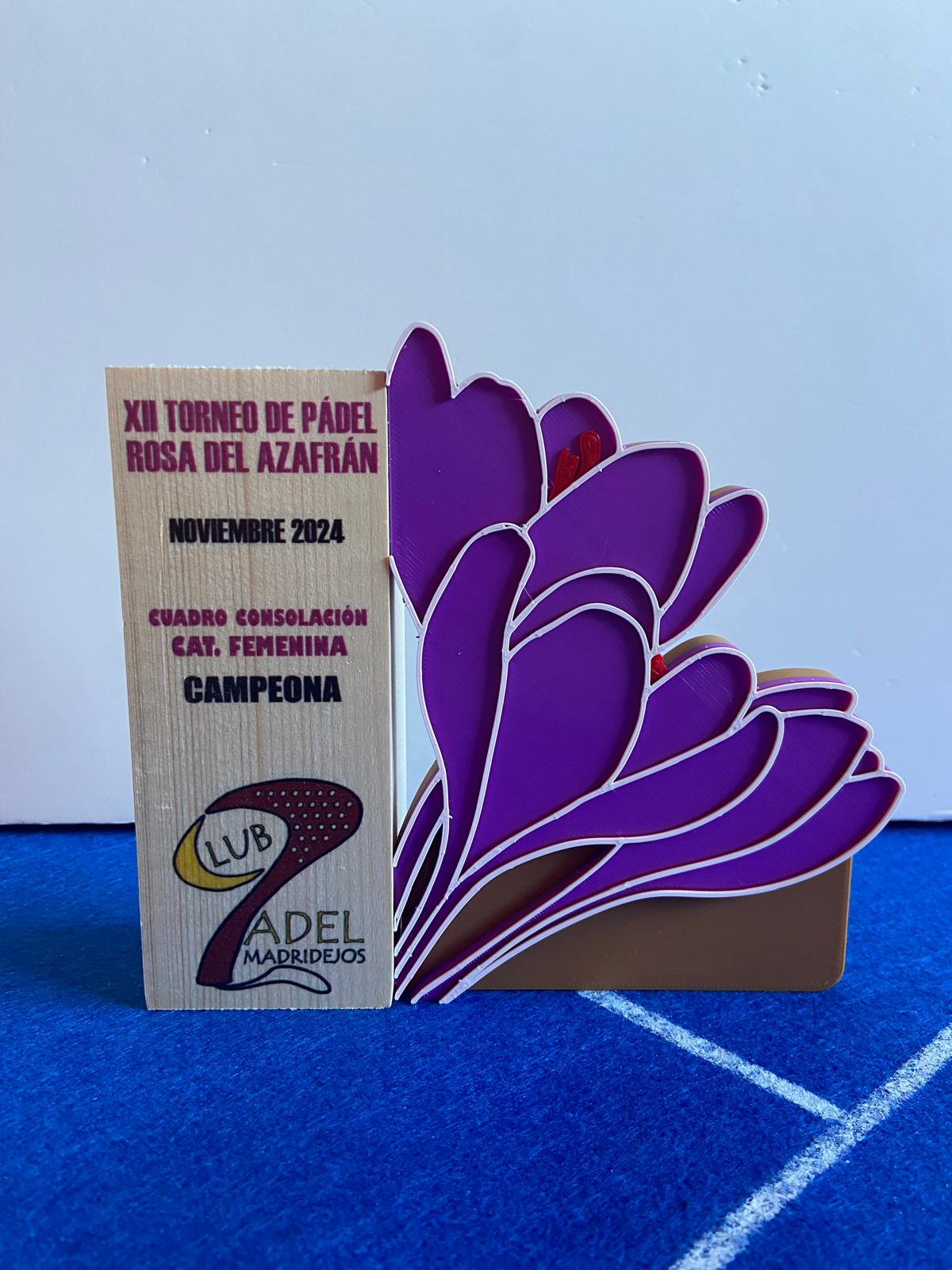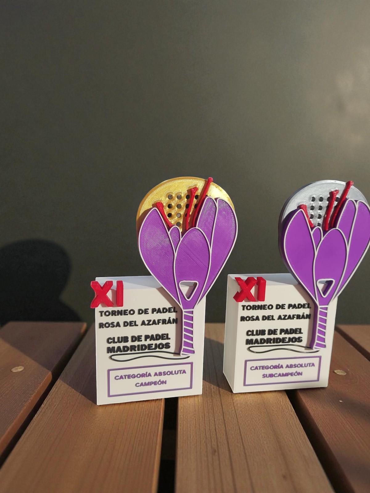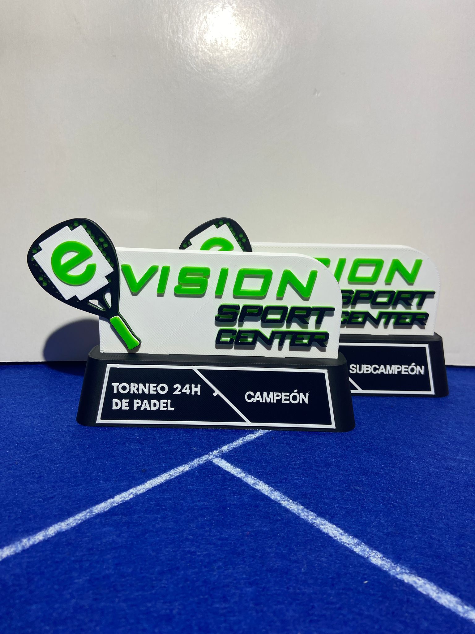 Trofeo personalizado para torneo de pádel, diseñado e impreso en 3D